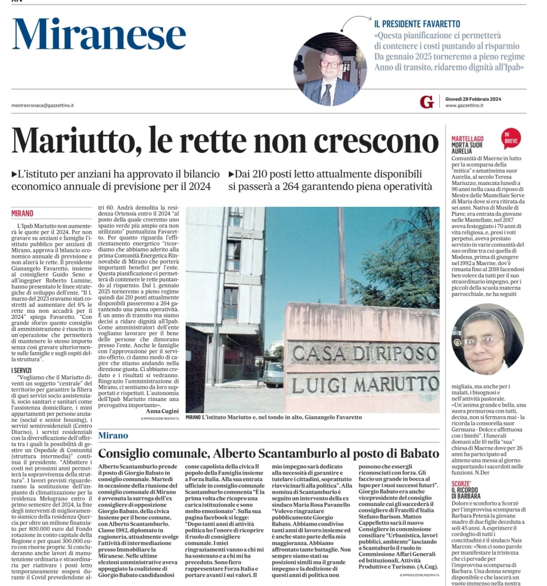 Mariutto, le rette non crescono.