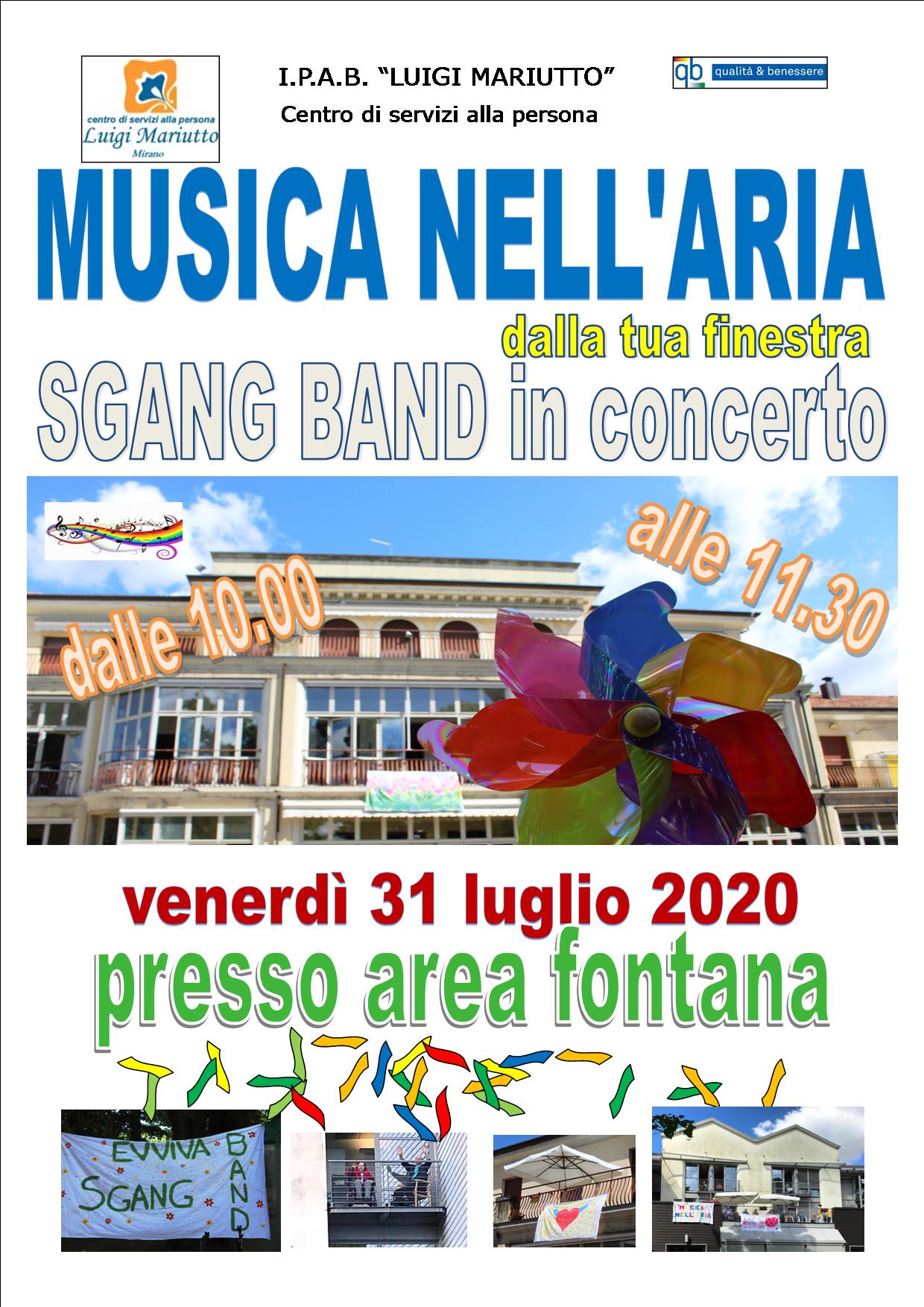 MUSICA NELL'ARIA dalla tua finestra con SGANG BAND in concerto venerdì 31 luglio 2020 dalle 10.00 alle 11.30 presso area Fontana.